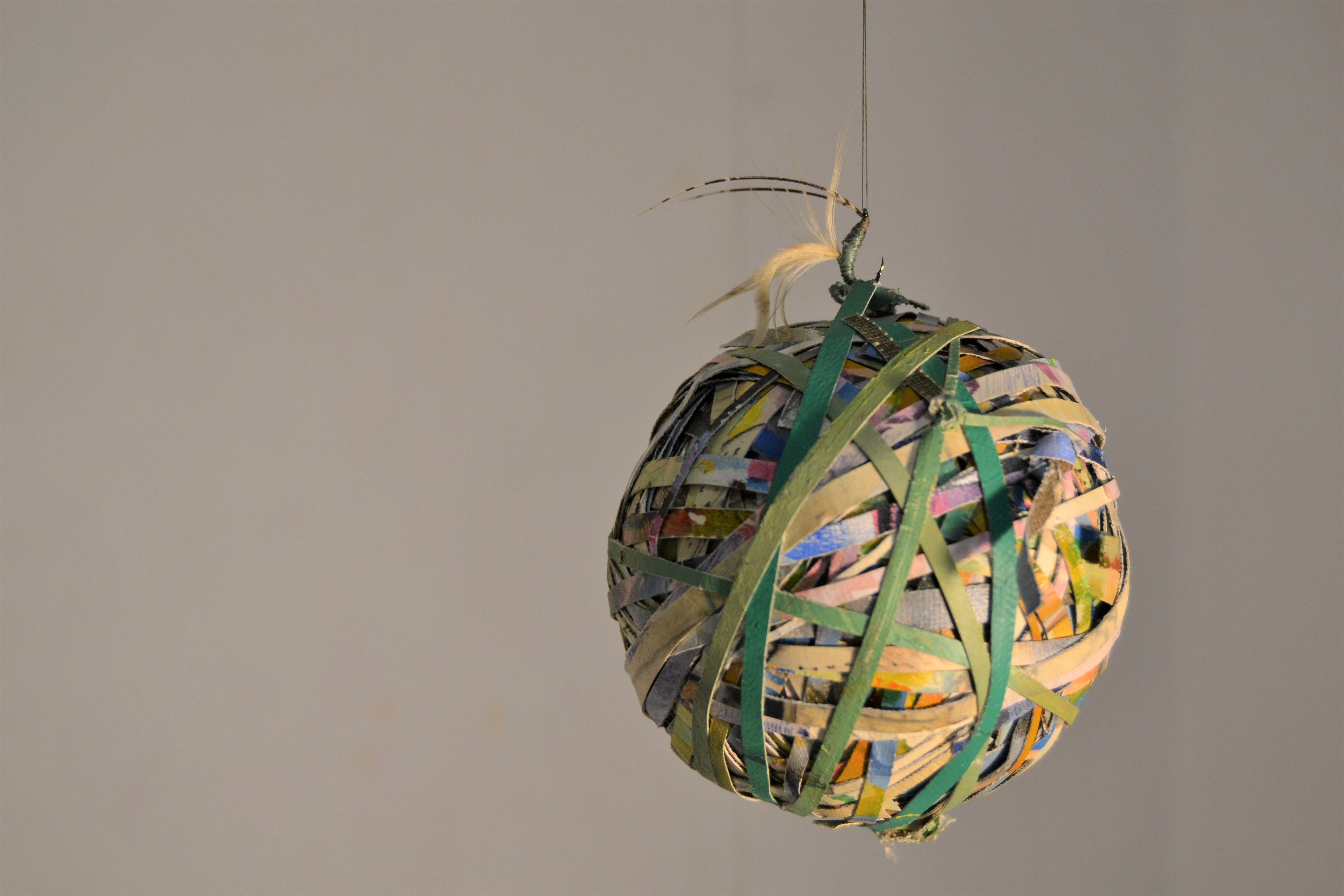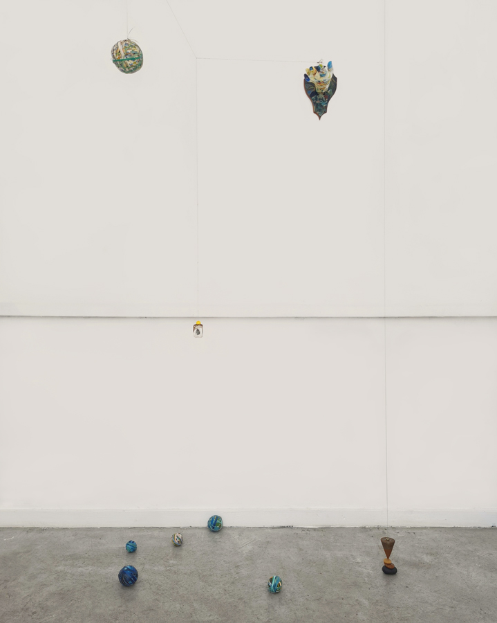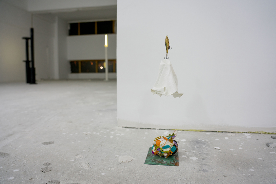 2019, copper, iron, pocket watch, fishing line, seashells, wool, acrylic thread, acrylic paint, cloth, wobbler, variable dimensions