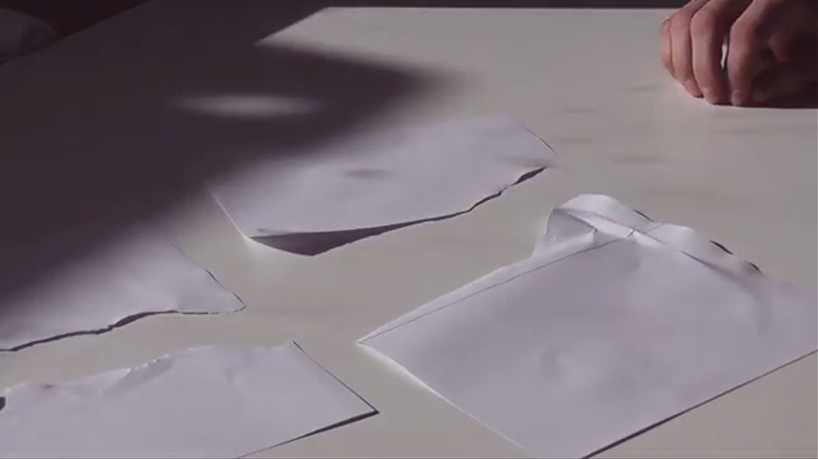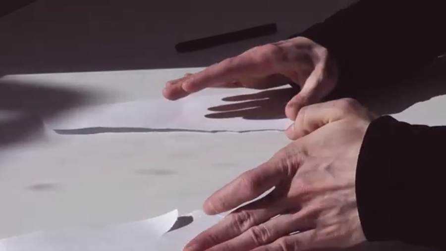 My contribution to the project consisted in testing the materiality of two sheets of paper in two slightly different situations, in which I highlighted the occurrence of chance versus the attempted human control. The imperative schism engulfs the cultural and political aspects with such a magnitude that our daily concern becomes a continuous swing between two opposing forces.