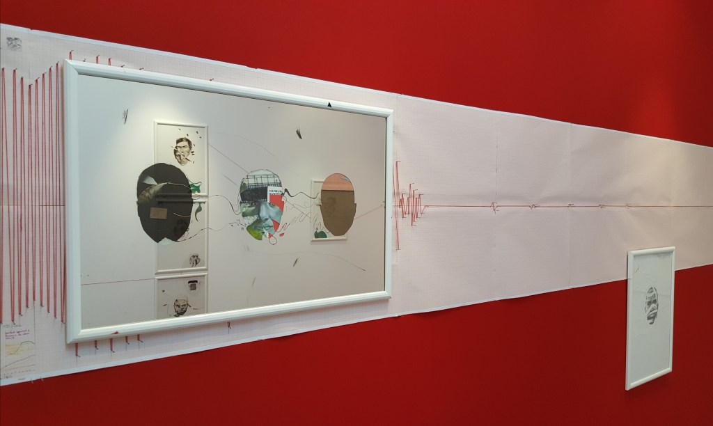 My contribution consisted of four drawings dealing with the global perception of individuals, and depicting the direct perception of real human beings through numbers, graphs, and impersonal statistics. The works are constructed from certain fragments and elements subtracted from my creative diary, surroundings, and mental imagery.