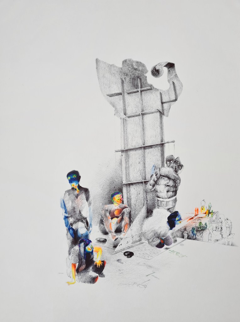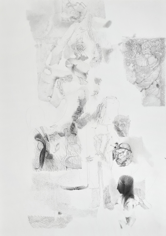 Chasing Dreams and Thirsty Desires | 2024 | pencil, graphite, and ballpoint pen on paper | 89 x 84 cm
