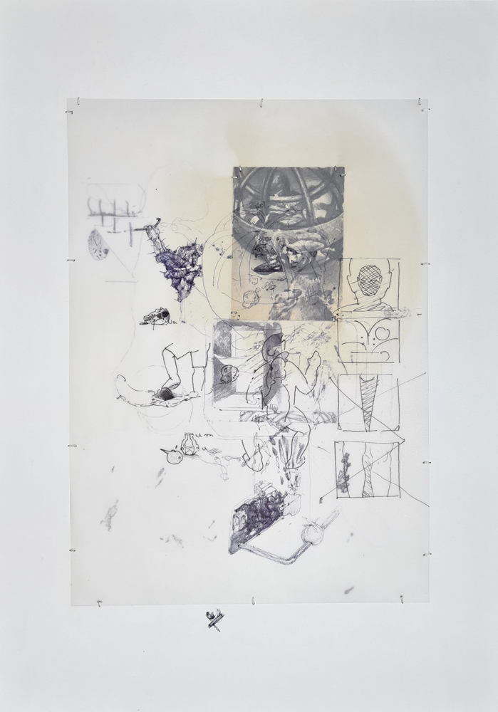 Dashboard Q2 | 2023 | ballpoint pen, ink, pencil on paper, and translucent vellum paper | 42 x 29.7 cm